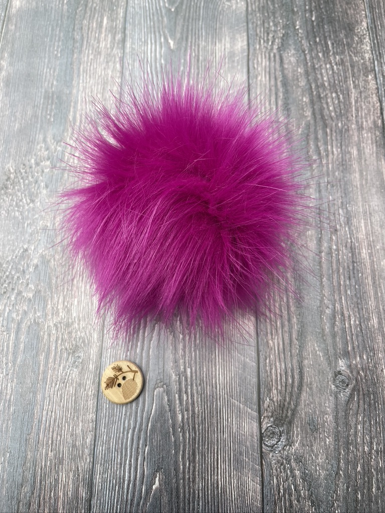 Minőségi műszőrméből kézzel készített pompom. Szálvégektől szálvégekig 14-16 cm-es nagyságú.